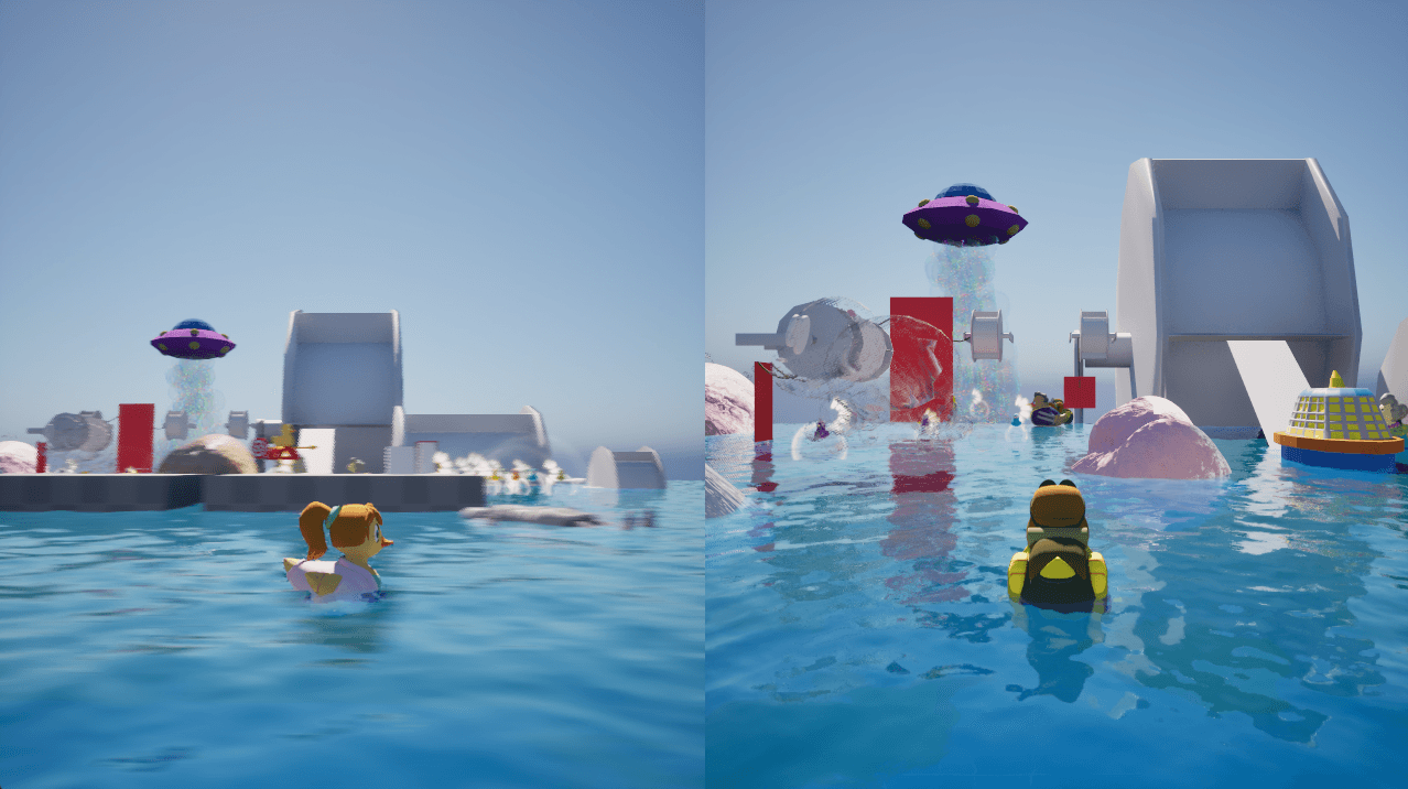 Unreleased Duckies Game is a 3D Co-op Adventure game that combines platforming, puzzle-solving, and herding the adorable baby rubber ducks you collect on your journey. You and a friend play as two parent rubber duckies who must grow and protect their flock after a bubble bath grows wildly out of control.